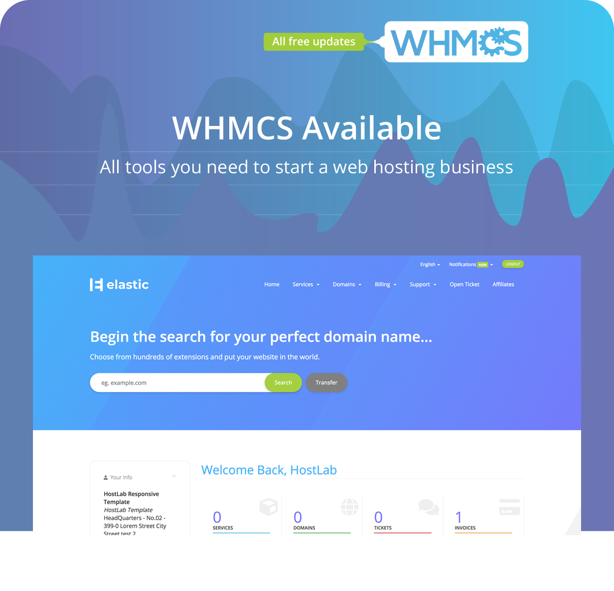 Elastic Template included latest WHMCS Responsive Template. Designed for all web hosting, business, multi purpose, domain sale websites, online business, personal blogs and similar sites. Now, customise your template and run your project