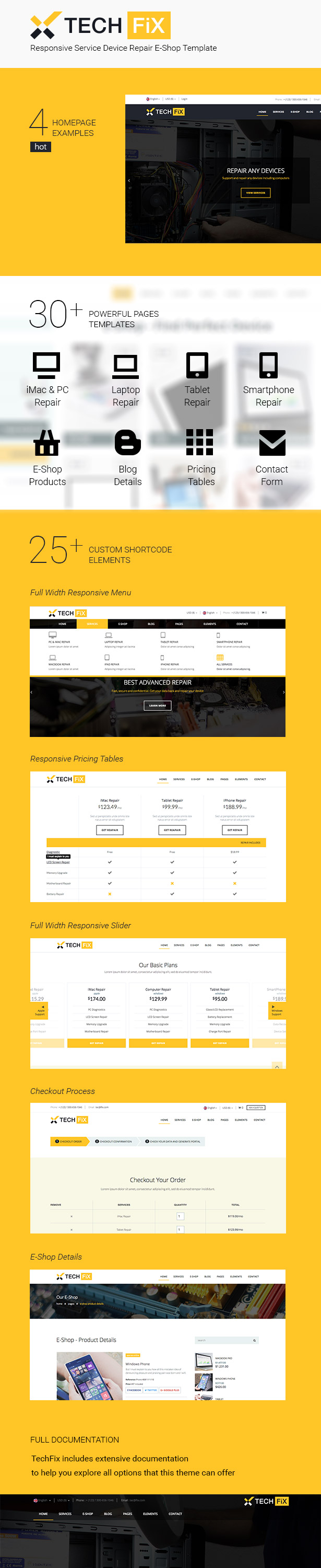 TechFix template is a responsive HTML5 and CSS3 technology based on Bootstrap Framework, comes with 30+ powerful page templates, 4 homepage layout examples and 25+ custom shortcode elements. TechFix make your repairing business easy and effective.